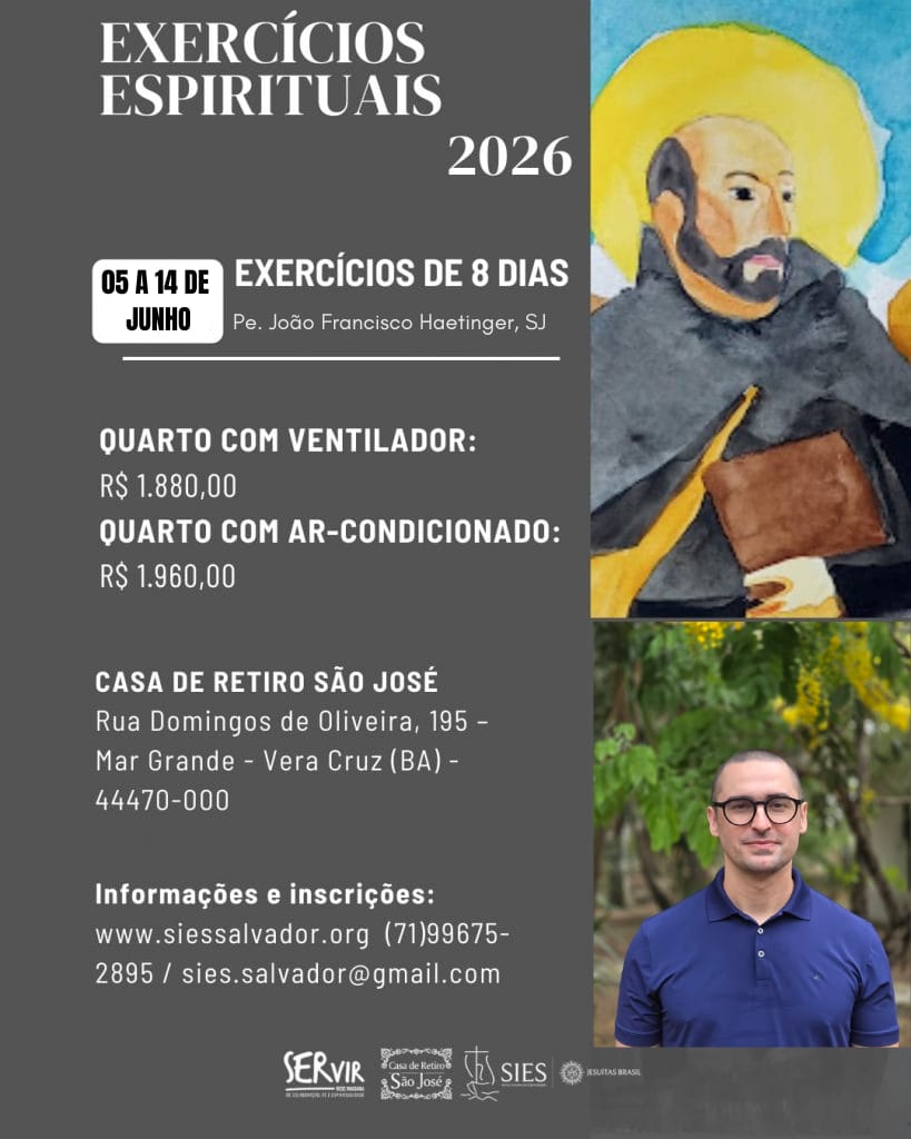 O Serviço Inaciano de Espiritualidade (SIES) Salvador convida você para viver o Retiro Espiritual de 8 dias, inspirado nos Exercícios Espirituais de Santo Inácio de Loyola.