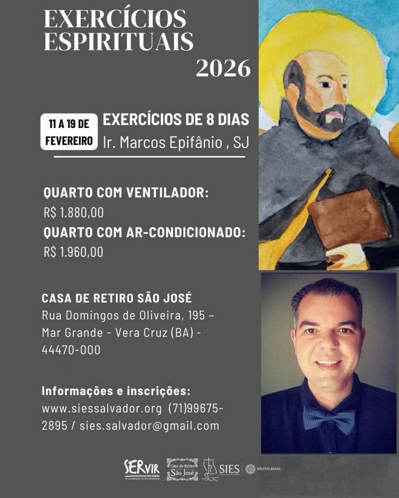 O Serviço Inaciano de Espiritualidade (SIES), em parceria com a Casa de Retiro São José, em Mar Grande (Vera Cruz/BA), convida para a primeira edição dos Exercícios Espirituais de 2026.